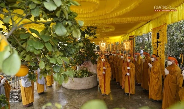 Hình ảnh lễ cung thỉnh kim quan Đại lão Hòa thượng Thích Thanh Đàm nhập bảo tháp trong khuôn viên chùa Hòa Lạc: