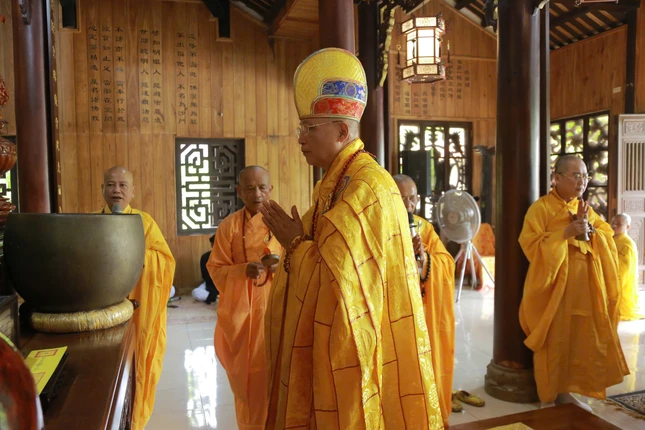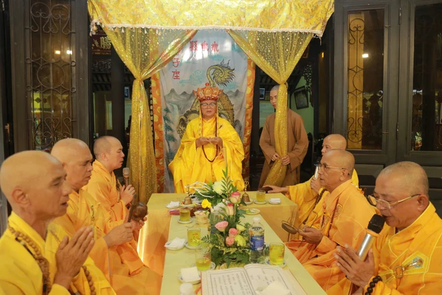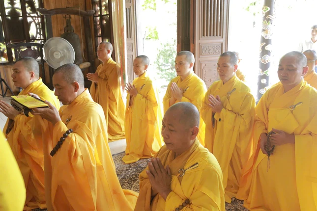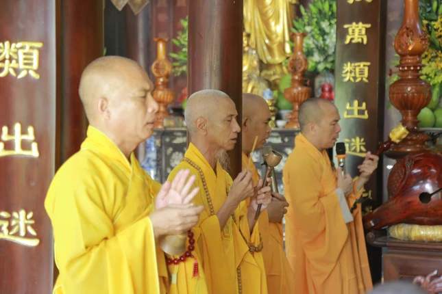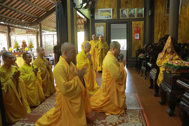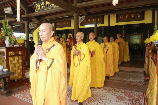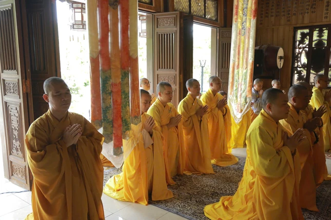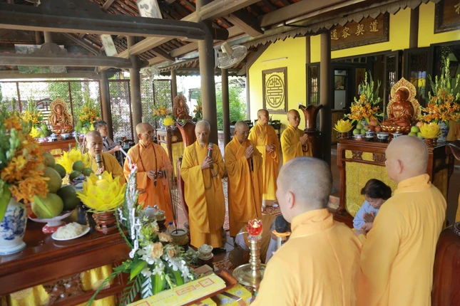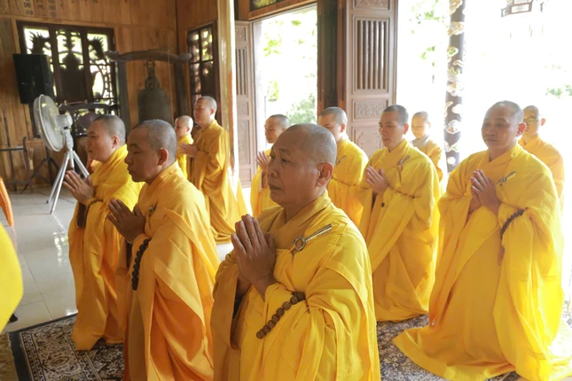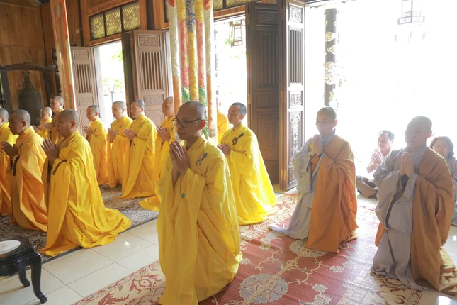 Cùng ngày, chư Tăng Ni sơn môn pháp phái và các trú xứ đã vân tập tổ đình Kim Tiên đồng tụng đàn Thủy sám và kinh Địa Tạng.
