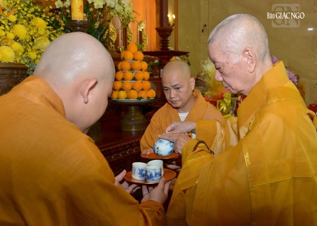 Trưởng lão Hòa thượng Thích Trí Quảng dâng trà cúng dường tại buổi lễ