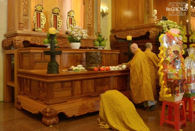 Trước đó, ngày 20-4 (1-3-Quý Mão), Hòa thượng Thích Lệ Trang cùng chư tôn đức Ban Trị sự GHPGVN TP.HCM, môn đồ hiếu quyến đã cử hành lễ cung thỉnh linh cốt Đại lão Hòa thượng Thích Từ Nhơn nhập bảo tháp trong khuôn viên Việt Nam Quốc Tự.