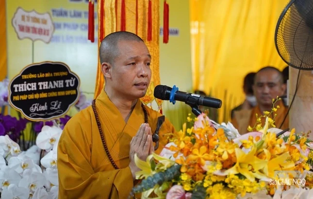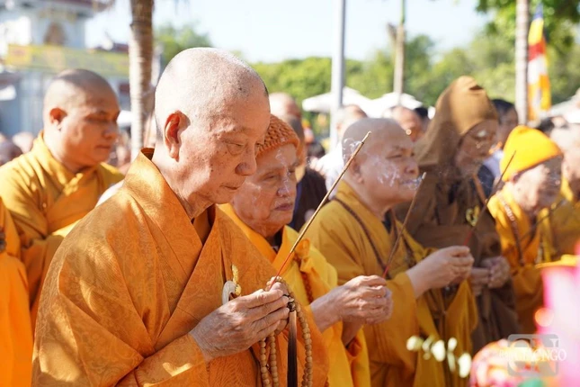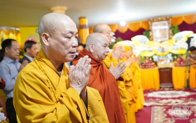 Trưởng lão Hòa thượng Thích Trí Quảng cung tuyên lời tưởng niệm của GHPGVN - Ảnh: Đăng Huy |
