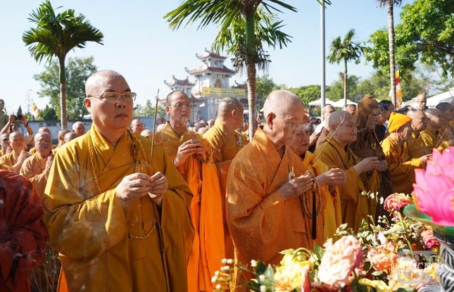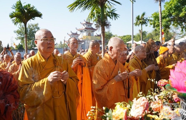 Chư tôn Trưởng lão Hội đồng Chứng minh, các vị giáo phẩm Hội đồng Trị sự dâng hương tưởng niệm |