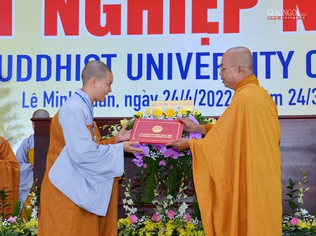 Thượng tọa Thích Quang Thạnh đã đọc quyết định công nhận tốt nghiệp năm 2022. Theo đó, đợt này có 35 Tăng, Ni và học viên tốt nghiệp thạc sĩ Phật học; 307 Tăng, Ni sinh tốt nghiệp cử nhân Phật học; 170 học viên hệ đào tạo từ xa; 43 học viên cao đẳng liên thông với các Trường Phật học tỉnh Tiền Giang và Bà Rịa - Vũng Tàu.