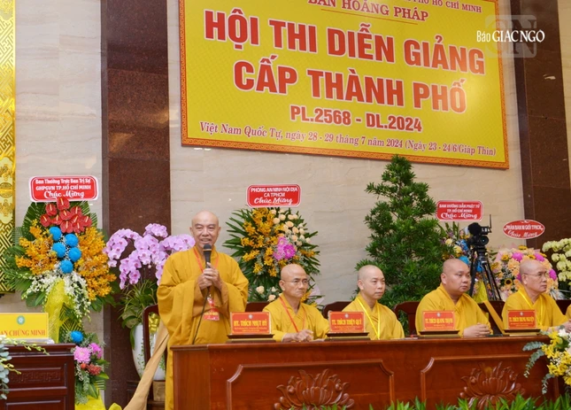 Báo cáo tại buổi lễ, Thượng tọa Thích Minh Nhựt, Phó ban kiêm Thư ký Ban Hoằng pháp GHPGVN TP.HCM cho biết Hội thi diễn giảng cấp Thành phố năm nay có 28 thí sinh được chọn từ Hội thi diễn giảng cấp quận huyện (diễn ra từ ngày 6-7 đến 15-7), tuy nhiên ở Hội thi cấp Thành phố có 7 thí sinh xin vắng vì nhiều lý do.