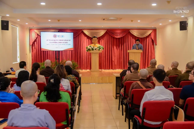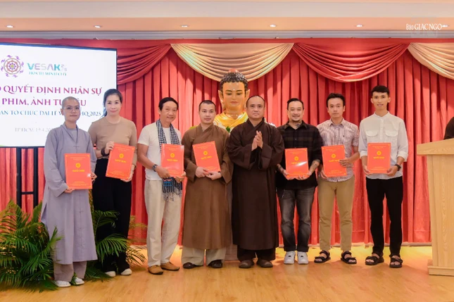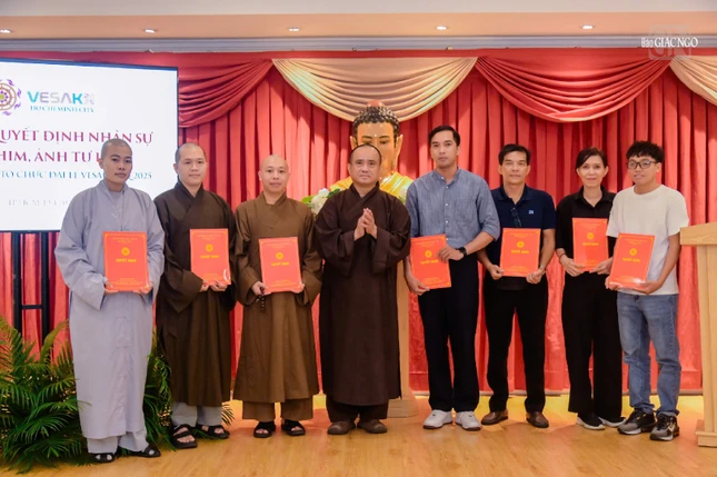 Tại buổi lễ, Đại đức Thích Minh Ân, Phó Chánh Văn phòng II T.Ư công bố quyết định thành lập Ban Phim, ảnh tư liệu do Trưởng lão Hòa thượng Thích Thiện Nhơn, Phó Pháp chủ Hội đồng Chứng minh, Chủ tịch Hội đồng Trị sự, Chủ tịch Ủy ban Tổ chức Đại lễ Vesak Liên Hiệp Quốc 2025 ấn ký chuẩn y.