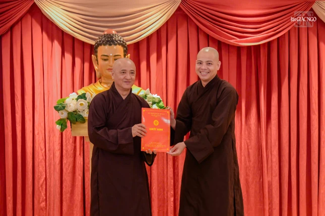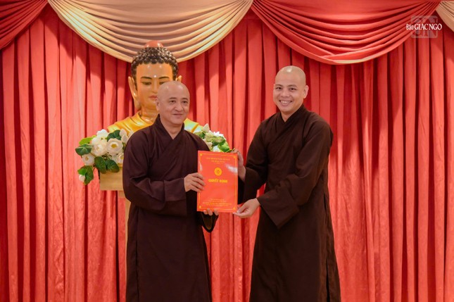 Hòa thượng Thích Huệ Thông trao quyết định đến Thượng tọa Thích Tâm Hải - Trưởng ban Phim, ảnh tư liệu |