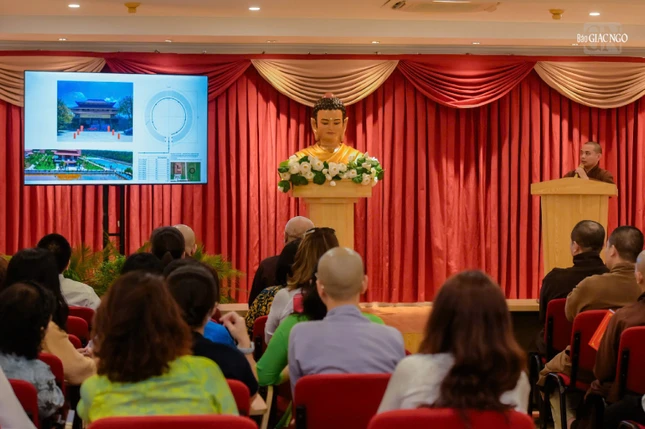Hoà thượng cũng đã chuyển lời thăm, sách tấn của Trưởng lão Hoà thượng Chủ tịch đến toàn thể Tăng Ni, các chuyên gia và Phật tử tham dự buổi lễ.