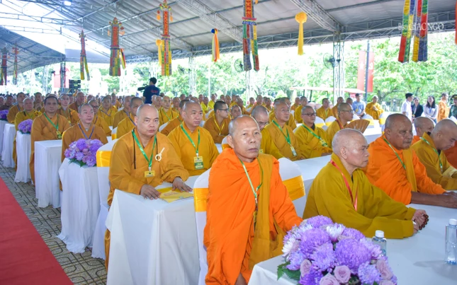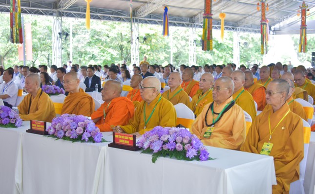 Quang lâm buổi lễ có Đức Pháp chủ GHPGVN - Đại lão Hòa thượng Thích Trí Quảng; chư vị giáo phẩm Phó Pháp chủ: Trưởng lão Hòa thượng Viên Minh, Trưởng lão Hòa thượng Tăng Nô; chư tôn Trưởng lão Ban Thường trực, Thành viên Hội đồng Chứng minh.