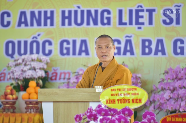 Tiếp đó, Thượng tọa Thích Thanh Phong thay mặt Trung ương GHPGVN và TP.HCM phát biểu tưởng niệm các anh hùng, liệt sĩ đã hy sinh trong cuộc khởi nghĩa Nam Kỳ, góp phần làm nên chiến thắng Cách mạng tháng Tám lịch sử. "Ngã Ba Giồng là niềm tự hào và có ý nghĩa lịch sử to lớn đối với dân tộc. Buổi lễ đã thể hiện tinh thần tri ân trong mùa Vu lan - Báo hiếu, uống nước nhớ nguồn của các thế hệ con cháu và nguyện noi gương các bậc tiền bối đã hy sinh vì đất nước.", Thượng tọa nhấn mạnh.
