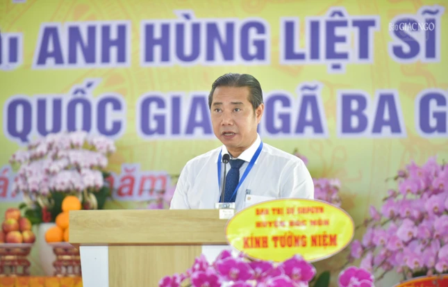 Phát biểu mở đầu buổi lễ, ông Trần Văn Khuyên, Bí thư Huyện ủy, Chủ tịch HĐND H.Hóc Môn, Trưởng ban Tổ chức đã nhắc lại lịch sử hào hùng của H.Hóc Môn và nêu ý nghĩa nhân văn to lớn của Lễ tưởng niệm các anh hùng, liệt sĩ được tổ chức tại Khu di tích lịch sử Ngã Ba Giồng năm nay.