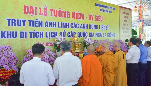 GNO - Sáng nay, 27-8 (24-7-Giáp Thìn), tại Khu Di tích lịch sử cấp Quốc gia Ngã Ba Giồng (xã Xuân Thới Thượng, H.Hóc Môn, TP.HCM) đã diễn ra Lễ tưởng niệm các anh hùng, liệt sĩ do Ủy ban MTTQVN H.Hóc Môn phối hợp Ban Trị sự GHPGVN huyện tổ chức, với sự yểm trợ của Trung ương Giáo hội và Ban Trị sự Phật giáo TP.HCM.