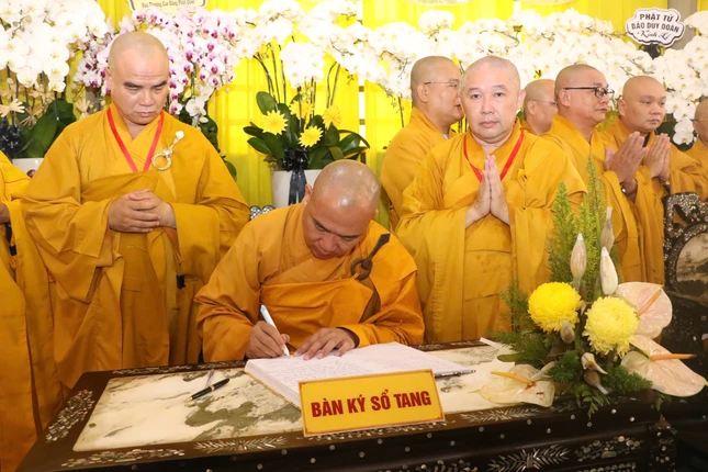Hòa thượng Thích Lệ Trang ghi sổ tang lưu niệm |