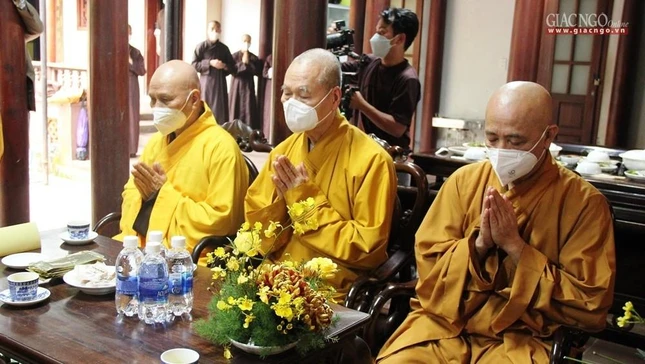 Cùng đi có Hòa thượng Thích Huệ Thông, Phó Tổng Thư ký Hội đồng Trị sự kiêm Chánh Văn phòng II GHPGVN cùng chư tôn đức Ủy viên Ban Thường trực Hội đồng Trị sự tại Huế: Hòa thượng Thích Đức Thanh (Trưởng ban Trị sự GHPGVN tỉnh Thừa Thiên Huế), Hòa thượng Thích Hải Ấn (Viện trưởng Học viện Phật giáo VN tại Huế).