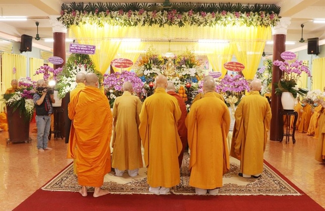Đoàn có HT.Thích Như Tín, HT.Thích Tịnh Hạnh - đồng Thành viên HĐCM, Chứng minh BTS GHPGVN TP.HCM; HT.Thích Thiện Nhơn, Chủ tịch HĐTS; HT.Thích Thiện Pháp, Phó Chủ tịch Thường trực HĐTS cùng chư tôn đức Ban Thường trực HĐTS, Văn phòng II T.Ư, lãnh đạo các ban, viện T.Ư, Học viện Phật giáo, Ban Thường trực BTS GHPGVN TP.HCM, BTS Phật giáo các quận, huyện TP, Tăng Ni trụ trì các tự viện.