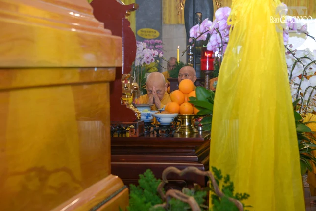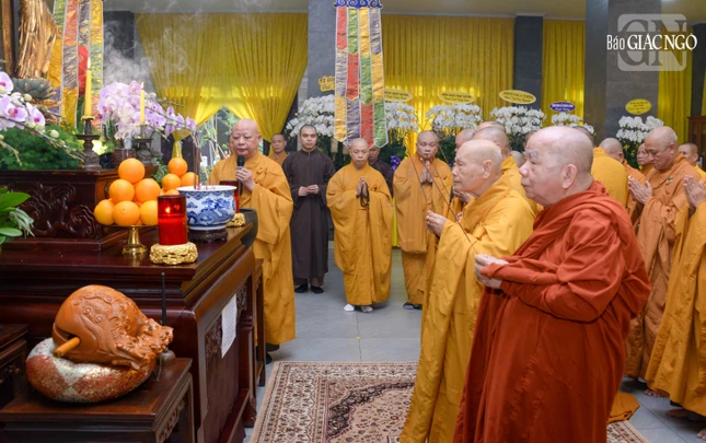 Nơi Giác linh đường, chư tôn giáo phẩm đã dâng hương tưởng niệm. Hòa thượng Thích Lệ Trang, Phó Chủ tịch Hội đồng Trị sự, Trưởng ban Nghi lễ T.Ư truy tán công hạnh của Trưởng lão Hòa thượng Thích Thiện Tánh tân viên tịch và dẫn lễ cầu nguyện Giác linh ngài cao đăng Phật quốc.