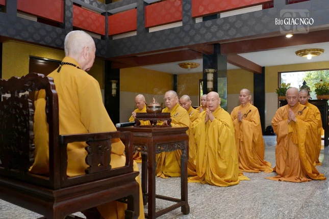 Đối trước Đức Pháp chủ, Trưởng lão Hòa thượng Chủ tịch Hội đồng Trị sự đã dâng lời tác bạch, trình với Đức Pháp chủ về các Phật sự sắp đến và cầu giáo giới.