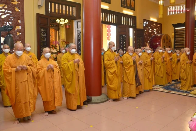 Trưởng lão Hòa thượng Thích Trí Quảng, Quyền Pháp chủ GHPGVN cùng chư Trưởng lão Hội đồng Chứng minh, Hội đồng Trị sự, Ban Trị sự GHPGVN TP.HCM và Tăng Ni các trú xứ trên địa bàn TP, các tỉnh thành phía Nam hiện diện tham dự lễ tưởng niệm năm thứ 44 ngày Đại lão Hòa thượng Thích Thiện Hòa, Phó Tăng thống Giáo hội Phật giáo Việt Nam Thống nhất.