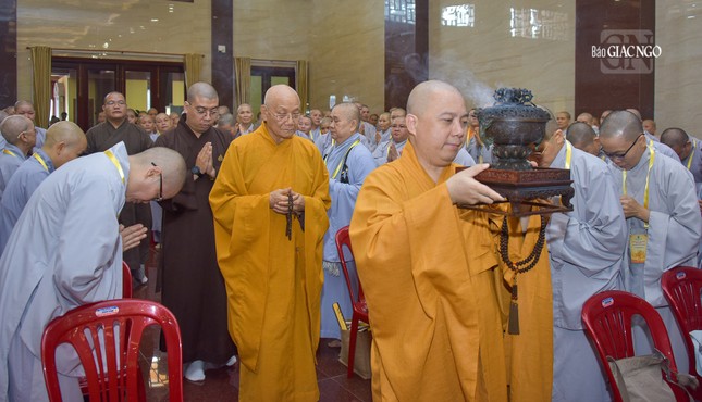 GNO - Sáng 15-12, tại hội trường Việt Nam Quốc Tự, Trưởng lão Hòa thượng Thích Minh Thông, Ủy viên Thường trực Hội đồng Chứng minh, Chứng minh Ban Trị sự GHPGVN TP.HCM quang lâm triển khai chủ đề "Giới luật Phật giáo" đến hơn 700 Tăng Ni trong Khóa huân tu tập trung và Bồi dưỡng trụ trì Phật lịch 2567.