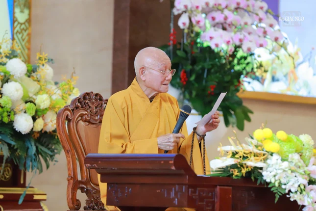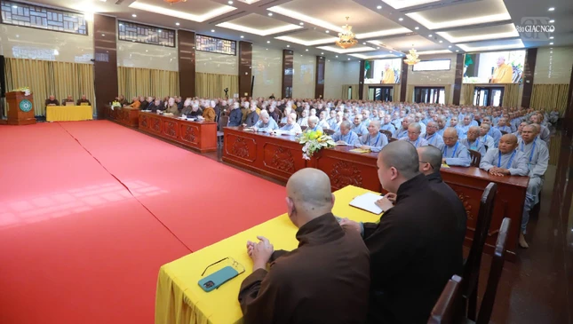 Theo chương trình, 8 giờ sáng ngày mai, 24-12, Hòa thượng Thích Lệ Trang, Phó Chủ tịch Hội đồng Trị sự, Trưởng ban Nghi lễ T.Ư, Trưởng ban Trị sự GHPGVN TP.HCM chia sẻ đến Tăng Ni tham dự Tuần huân tu và Khóa bồi dưỡng trụ trì năm 2025 về chủ đề "Nghi lễ Phật giáo".