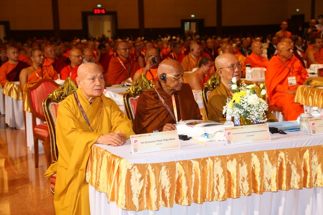 Chiều 20-5-2024, tại ngày làm việc diễn ra ở UNCC, sau phần nghị sự và lắng nghe các phát biểu tại hội trường, Trưởng lão Hòa thượng Thích Thiện Nhơn, Phó Pháp chủ Hội đồng Chứng minh, Chủ tịch Hội đồng Trị sự cùng các vị tháp tùng tham dự đã đón nhận lá cờ có biểu tượng ICDV, đăng cai Đại lễ Vesak Liên Hiệp Quốc năm 2025 tại Việt Nam.