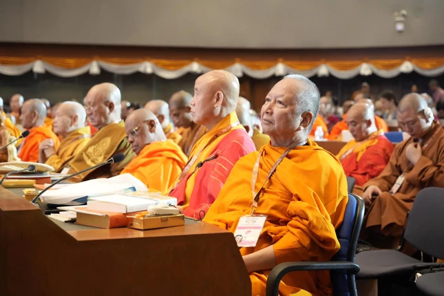 Trưởng lão Hòa thượng Thích Thiện Nhơn, Phó Pháp chủ, Chủ tịch Hội đồng Trị sự GHPGVN có bài phát biểu trong ngày làm việc tại Đại học Mahachulalongkornrajavidyalaya - Ảnh: MCU |