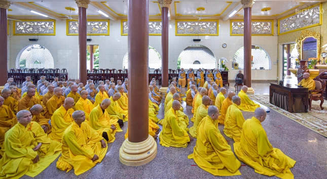 GNO - Sáng nay, 30-6-Ất Tỵ (24-7), Trưởng lão Hòa thượng Thích Thiện Nhơn, Phó Pháp chủ Hội đồng Chứng minh, Chủ tịch Hội đồng Trị sự đã đến thăm và có thời pháp thoại sách tấn hơn 100 hành giả đang an cư tại hạ trường chùa Vạn Đức (P.Tam Bình, TP.HCM).