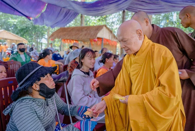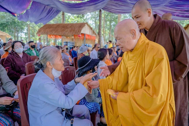 Bên cạnh đó, Trưởng lão Hòa thượng cũng trao 200 phần quà Tết đến người khiếm thị, người già neo đơn và các hoàn cảnh khó khăn tại địa phương nhằm sẻ chia trong những ngày đầu xuân mới.