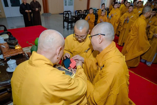 Theo đó, Trưởng lão Hòa thượng đã trao 100 phần học bổng đến các chú tiểu đang tu học tại thiền viện Thường Chiếu, chùa Long Phước Thọ và chùa Quan Âm (Đồng Nai).