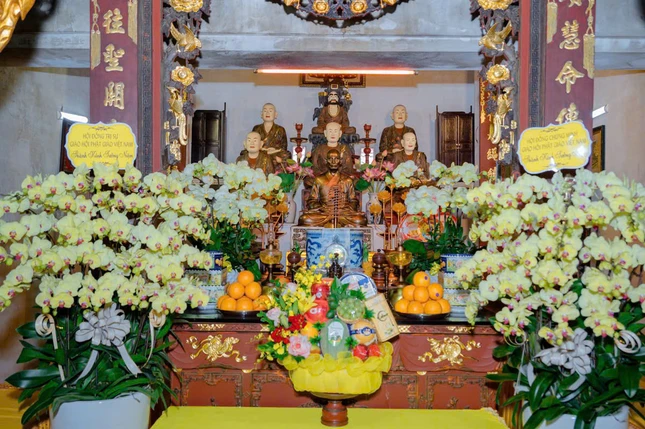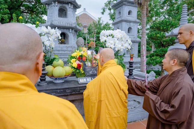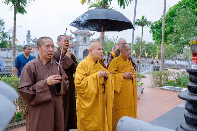 Trong không khí trang nghiêm tại Tổ đường, trước tôn tượng cố Đại lão Hòa thượng Đệ tam Pháp chủ, chư tôn đức đã thành kính dâng hương, đảnh lễ tưởng niệm, thể hiện lòng kính ngưỡng và tưởng nhớ công hạnh to lớn của ngài, vị cao Tăng đã cống hiến cả đời cho sự phát triển của Phật giáo Việt Nam.