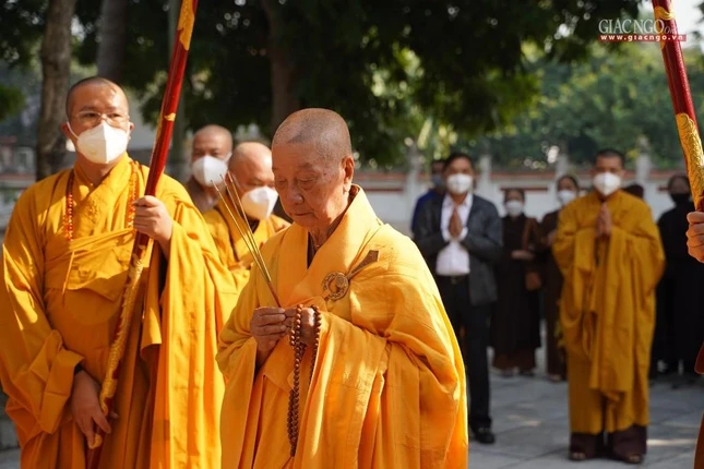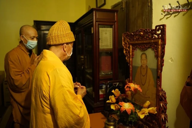 Sáng 8-12, Trưởng lão Hòa thượng đã vào tổ đình Viên Minh (chùa Ráng, xã Quang Lãng, huyện Phú Xuyên) dâng hương đảnh lễ trước bảo tháp Đức Đệ tam Pháp chủ - Đại lão Hòa thượng Thích Phổ Tuệ (1917-2021) và dự lễ tuần lâm chung thất của ngài do Ban Thường trực Hội đồng Chứng minh, Ban Thường trực Hội đồng Trị sự, Ban Trị sự GHPGVN TP.Hà Nội cùng môn đồ pháp quyến tổ chức.