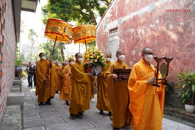 Cùng đi có Hòa thượng Thích Bảo Nghiêm, Phó Chủ tịch Hội đồng Trị sự, Trưởng ban Hoằng pháp Trung ương, Trưởng ban Trị sự GHPGVN TP.Hà Nội; Thượng tọa Thích Thanh Phong, Trưởng ban Kinh tế - Tài chánh Trung ương cùng chư Tăng Ni các tổ đình ở Hà Nội.