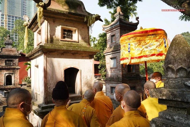 Cùng ngày, Trưởng lão Hòa thượng Thích Trí Quảng đã đến chùa Bồ Đề (quận Long Biên) đảnh lễ tại bảo tháp Đức Đệ nhị Pháp chủ - cố Đại lão Hòa thượng Thích Tâm Tịch (1915-2005).