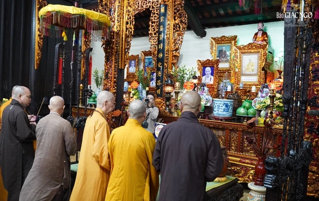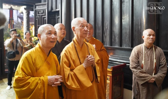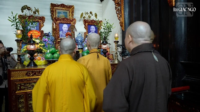 Tại nơi đây, Đức Đệ tứ Pháp chủ GHPGVN cùng chư vị Hòa thượng Thích Bảo Nghiêm, Phó Chủ tịch Hội đồng Trị sự, Trưởng ban Hoằng pháp T.Ư, Trưởng ban Trị sự GHPGVN TP.Hà Nội; Hòa thượng Thích Quảng Hà, Phó Chủ tịch Hội đồng Trị sự, Trưởng ban Trị sự GHPGVN tỉnh Nam Định; Thượng tọa Thích Giác Dũng, Thư ký Văn phòng II Hội đồng Chứng minh; Thượng tọa Thích Thanh Phong, Phó Chủ tịch Hội đồng Trị sự, Trưởng ban Kinh tế - Tài chính T.Ư cùng chư Thượng tọa Văn phòng Đức Pháp chủ, Ban Trị sự các tỉnh phía Bắc đã lễ Phật, dâng hương lễ Tổ tại Tổ đường.