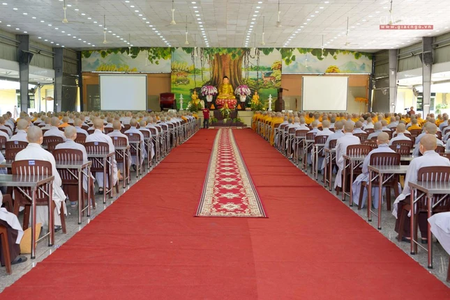 GNO - Chiều 18-12, Trưởng lão Hòa thượng Thích Trí Quảng, Đệ nhất Phó Pháp chủ, Viện trưởng Học viện Phật giáo VN tại TP.HCM quang lâm sách tấn Tăng Ni sinh viên đang tu học nội trú tại cơ sở 2 (xã Lê Minh Xuân, huyện Bình Chánh).