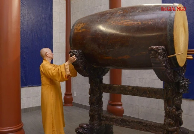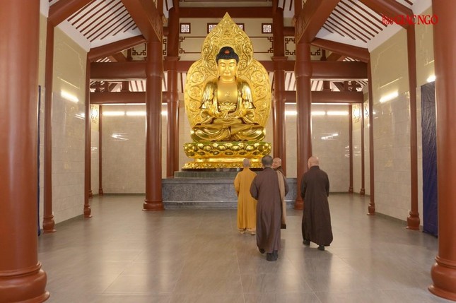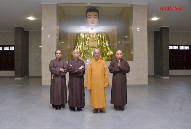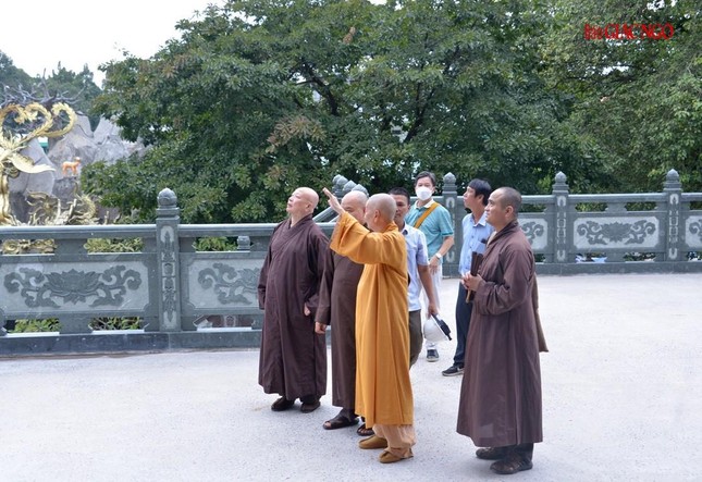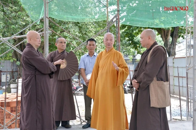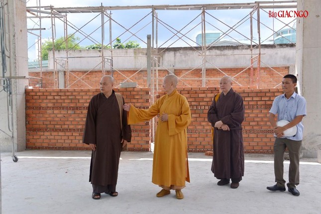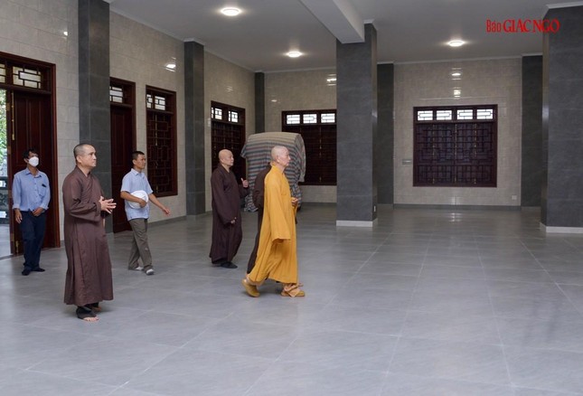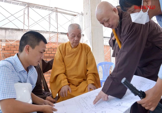 Trưởng lão Hòa thượng đã lắng nghe báo cáo, xem xét thiết kế và phối cảnh các hạng mục xây dựng mới, cùng chư Hòa thượng, Thượng tọa chỉ đạo điều chỉnh một số chi tiết phù hợp với thực tế và yêu cầu sử dụng của cơ sở tự viện này.