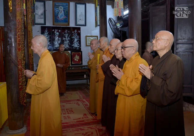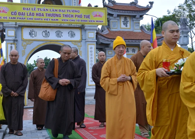 GNO - Sáng nay, 30-10 (16-9-Quý Mão), tại tổ đình Viên Minh (X.Quang Lãng, H.Phú Xuyên, TP.Hà Nội), Trưởng lão Hòa thượng Thích Trí Quảng, Pháp chủ GHPGVN đã quang lâm viếng bảo tháp và thăm thiền thất cố Đại lão Hòa thượng Thích Phổ Tuệ - Đức Đệ tam Pháp chủ GHPGVN nhân tuần lâm Đại tường của ngài.