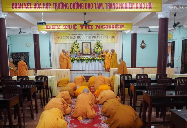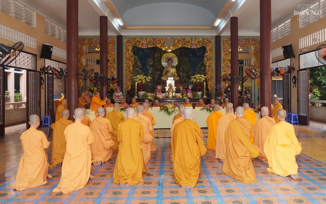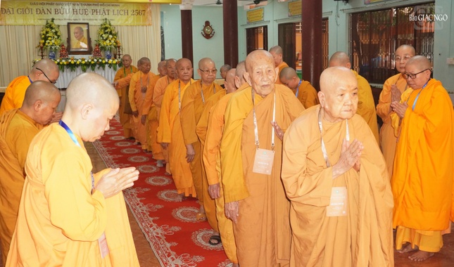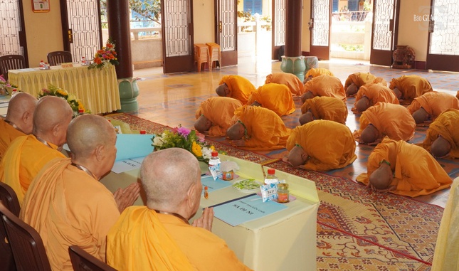 Trước đó, chư vị giáo phẩm Thường trực Ni giới hệ phái Khất sĩ, Ban Điều hành giới trường tịnh xá Ngọc Phương, Ban Quản giới tử, Ban Hộ đàn và giới tử đã trang nghiêm tổ chức lễ cung rước di ảnh Trưởng lão Hòa thượng Thích Bửu Huệ từ Việt Nam Quốc Tự về giới trường tịnh xá Ngọc Phương.