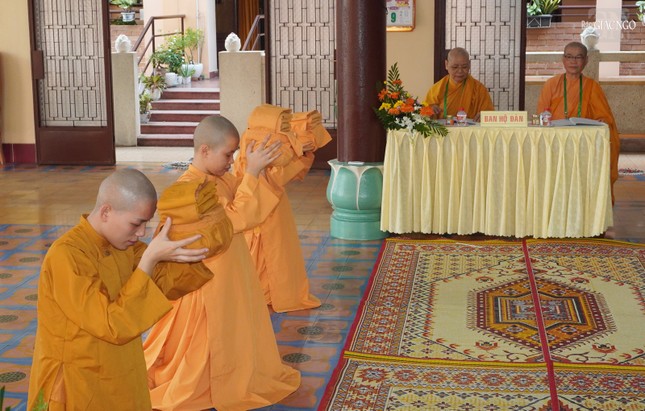 GNO - Chiều nay, 21-11(9-10-Quý Mão), tại điểm truyền giới dành cho Ni hệ phái Khất sĩ - tịnh xá Ngọc Phương (Q.Gò Vấp, TP.HCM), Hội đồng Thập sư đã đăng đàn truyền giới Thức-xoa-ma-na và Sa-di-ni đến 8 giới tử.