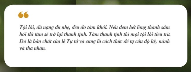 Tội lỗi, dù nặng dù nhẹ, đều do tâm khởi. Nếu đem hết lòng thành sám hối thì tâm sẽ trở lại thanh tịnh. Tâm thanh tịnh thì mọi tội lỗi tiêu trừ. Đó là bản chất của lễ Tự tứ và cũng là cách thức để tự cứu độ lấy mình và tha nhân. Phải chăng đây mới là ý nghĩa đích thực của thắng pháp Vu lan? Bởi bản chất của lễ Vu lan là nương nhờ thần lực hay sức mạnh tâm linh của ngày lễ Tự tứ, tức là ngày tha thứ giữa những người còn sống với nhau, là ngày mà mọi người biết cởi bỏ hận thù ràng buộc, biết buông bỏ lỗi lầm, biết lắng nghe và soi sáng cho nhau để sống vui an lạc. Nếu đúng vậy thì trong ngày lễ Vu lan, việc cần làm, phải làm và làm ngay của những người con là hãy nói lời xin lỗi với mẹ, với cha, vì ai trong chúng ta mà không hơn một lần có lỗi với đấng sinh thành?
