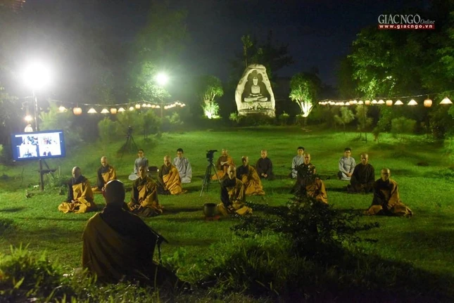 GNO - Trong tình hình dịch bệnh Covid-19 đang diễn biến khó lường, tu viện Khánh An (Q.12) đã tổ chức các thời khóa tu học trực tuyến vào mỗi tối từ 18g45 hàng ngày, với hơn 300 người tham gia trực tuyến qua ứng dụng Zoom, Facebook và YouTube.