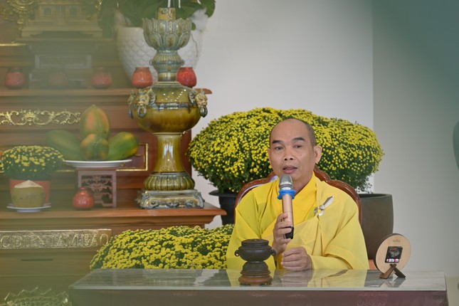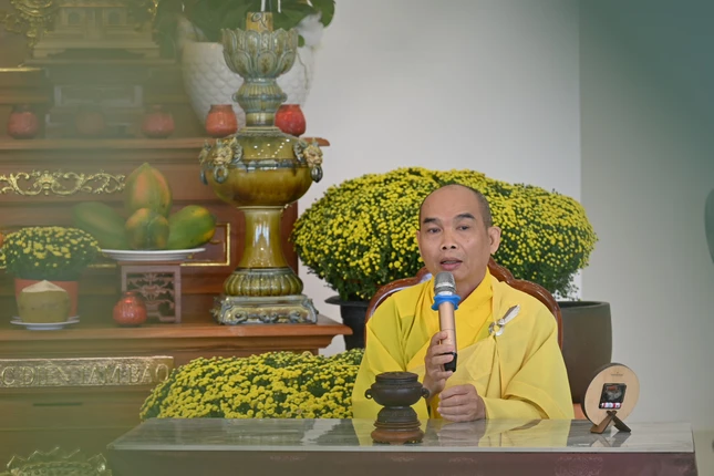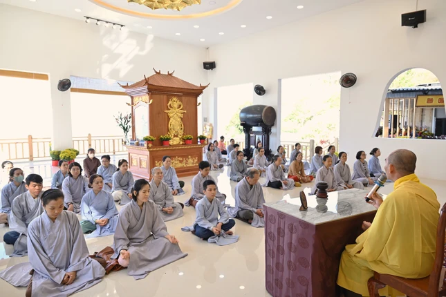Tại khóa tu, đại chúng được lắng nghe thời pháp thoại khai pháp đầu năm do Thượng tọa Thích Hoằng Thạnh, tri sự chùa Vạn Đức thuyết giảng.
