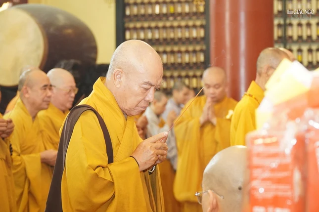 Trưởng lão Hòa thượng Thích Như Tín, Ủy viên Thường trực Hội đồng Chứng minh; Trưởng lão Hòa thượng Thích Huệ Văn, Thành viên Hội đồng Chứng minh; Hòa thượng Thích Nhựt Hỷ, Phó Thường trực Ban Trị sự GHPGVN TP.HCM; chư tôn đức Ban Trị sự Phật giáo TP.HCM; chư Tăng Ni và Phật tử đã về chùa Ấn Quang dâng hương tưởng niệm.