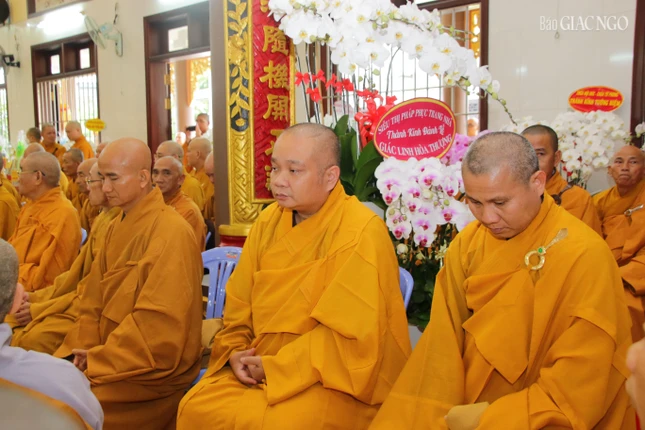 Chứng minh buổi lễ tưởng niệm có sự hiện diện của chư tôn giáo phẩm Chứng minh, Cố vấn, Ban Thường trực Ban Trị sự GHPGVN TP.HCM; chư tôn đức Ban Trị sự GHPGVN quận Tân Phú; chư tôn đức Tông phong Thiên Thai Giáo Quán; Tăng Ni trụ trì các tự viện, toàn thể môn đồ pháp quyến và đông đảo Phật tử tham dự.