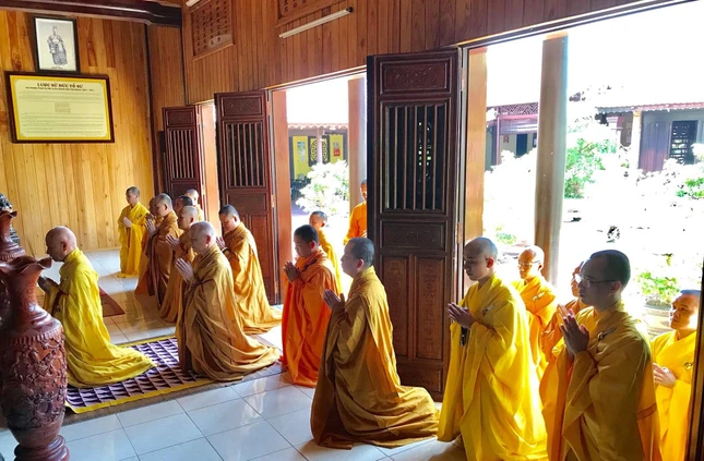Theo đó, Hòa thượng Thích Giác Quang, Phó Thư ký Ban Thường trực Hội đồng Chứng minh GHPGVN, pháp điệt của Tổ sư đã niêm hương tưởng niệm trước Tổ đường, chư tôn đức đã thành kính đảnh lễ tưởng niệm, cùng quá đường và kinh hành niệm Phật.