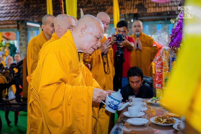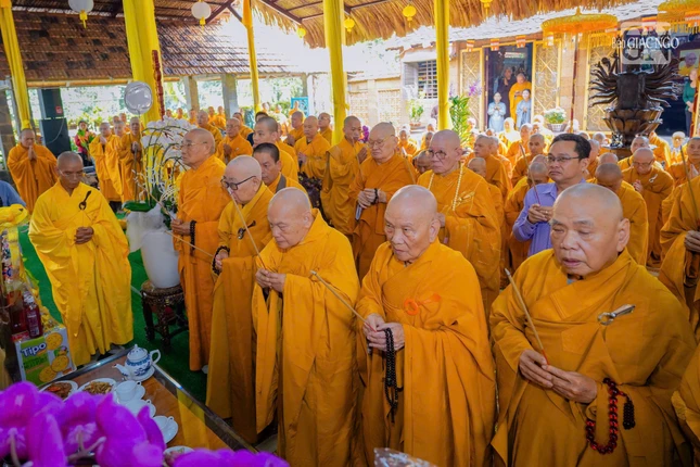 Trước Giác linh đài, chư tôn giáo phẩm thành kính dâng hương tưởng niệm Trưởng lão Hòa thượng Thích Từ Thông, bậc giáo phẩm gắn bó với Phật sự hoằng pháp và giáo dục, là giáo thọ trực tiếp, bậc Thầy của nhiều thế hệ Tăng Ni.