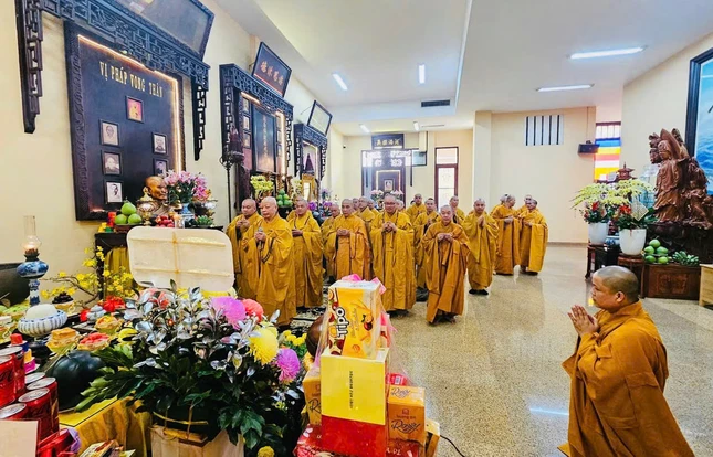 Trước án thờ Giác linh Trưởng lão Hòa thượng Phó Pháp chủ, chư tôn đức đã dâng hương, cung tuyên pháp ngữ và đảnh lễ, tưởng niệm bậc trưởng lão của Phật giáo Việt Nam, gắn bó với Phật sự TP.HCM qua nhiều giai đoạn lịch sử, nhân tròn 1 năm ngày ngài viên tịch.