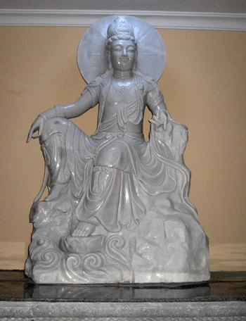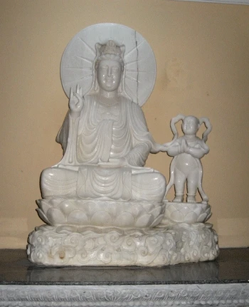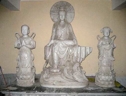 Tượng Phật Quan Âm mặt hiền từ đang nhìn xuống, một tay bắt ấn tam muội, một tay cầm bình nước cam lồ cao khoảng 5m. Tượng Phật Tổ trên mão Quan Âm cao 2m... mặt hướng ra biển.