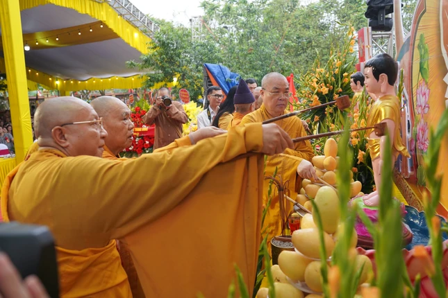 Tại buổi lễ, chư tôn đức cử hành nghi lễ dâng hương, tụng sám Khánh đản và thực hiện cử hành nghi thức Tắm Phật theo truyền thống và cắt băng khánh thành và dâng hương lễ Phật tại chính điện Tam bảo chùa Phú Lâm.