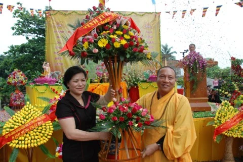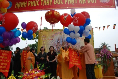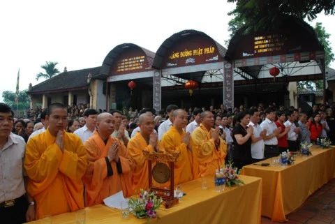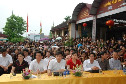 Về phía chính quyền có bà Vũ Thị Bích Việt - Phó Chủ tịch UBND tỉnh Tuyên Quang; ông Nguyễn Tuyên - Phó giám đốc Sở Nội vụ tỉnh Tuyên Quang cùng các vị đại diện lãnh đạo UBND, MTTQ tỉnh Tuyên Quang và chính quyền sở tại và hàng nghìn Phật tử địa phương cùng về tham dự.