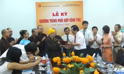Nhằm tăng cường hơn nữa sự phối hợp công tác với mục tiêu chung tiếp tục triển khai thực hiện thành công Nghị quyết 36 của Bộ Chính trị về công tác đối với NVNONN, sáng 16/7 tại trụ sở Trung ương Giáo hội Phật giáo Việt Nam đã diễn ra Lễ ký kết Chương trình phối hợp công tác giữa Ủy ban Nhà nước về người Việt Nam ở nước ngoài (Ủy ban) và Trung ương Giáo hội Phật giáo Việt Nam (Giáo hội).
